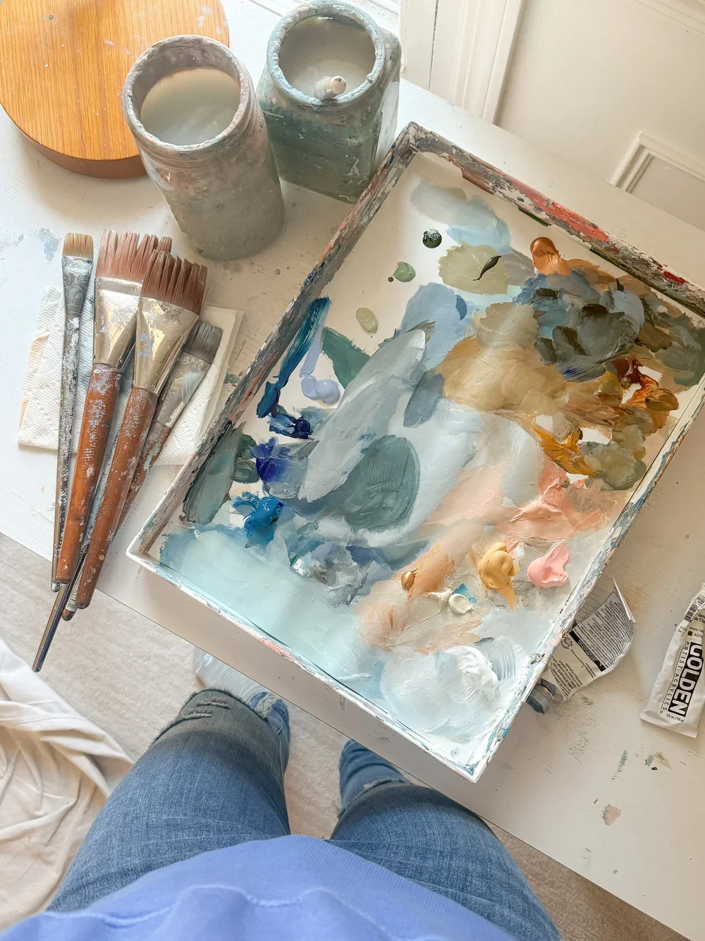 As week 13/25 comes to an end I wanted to share some progress shots of the new Summer Collection that is in the works. This past Saturday Evan had a bachelor party outing, so I took full advantage of some alone time and painted for hours. It was so much to fun to let loose and not feel pressured by time. During this session I was having flashbacks of being a little girl and sitting on my parents deck, painting and drawing for hours and hours, never growing tired. Some things never change!